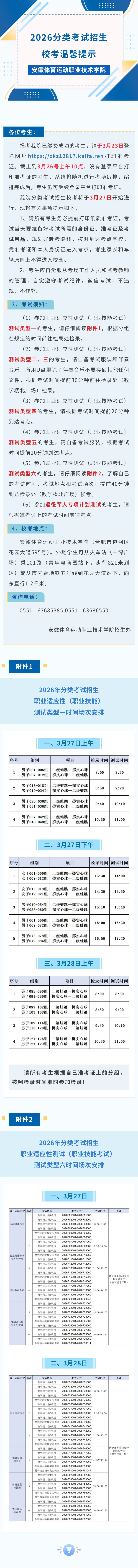 上一条:安徽体育运动职业技术学院关于招生工作的严正声明! 下一条:关于我院2026年分类考试招生网上缴费的温馨提示
